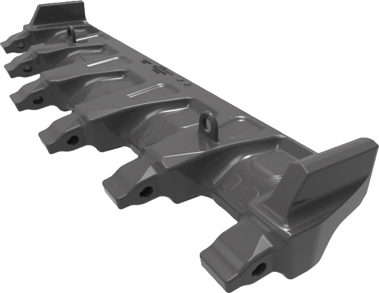 The excavator cast lip is manufactured in a single piece with proprietary alloys for maximum strength and wear life.